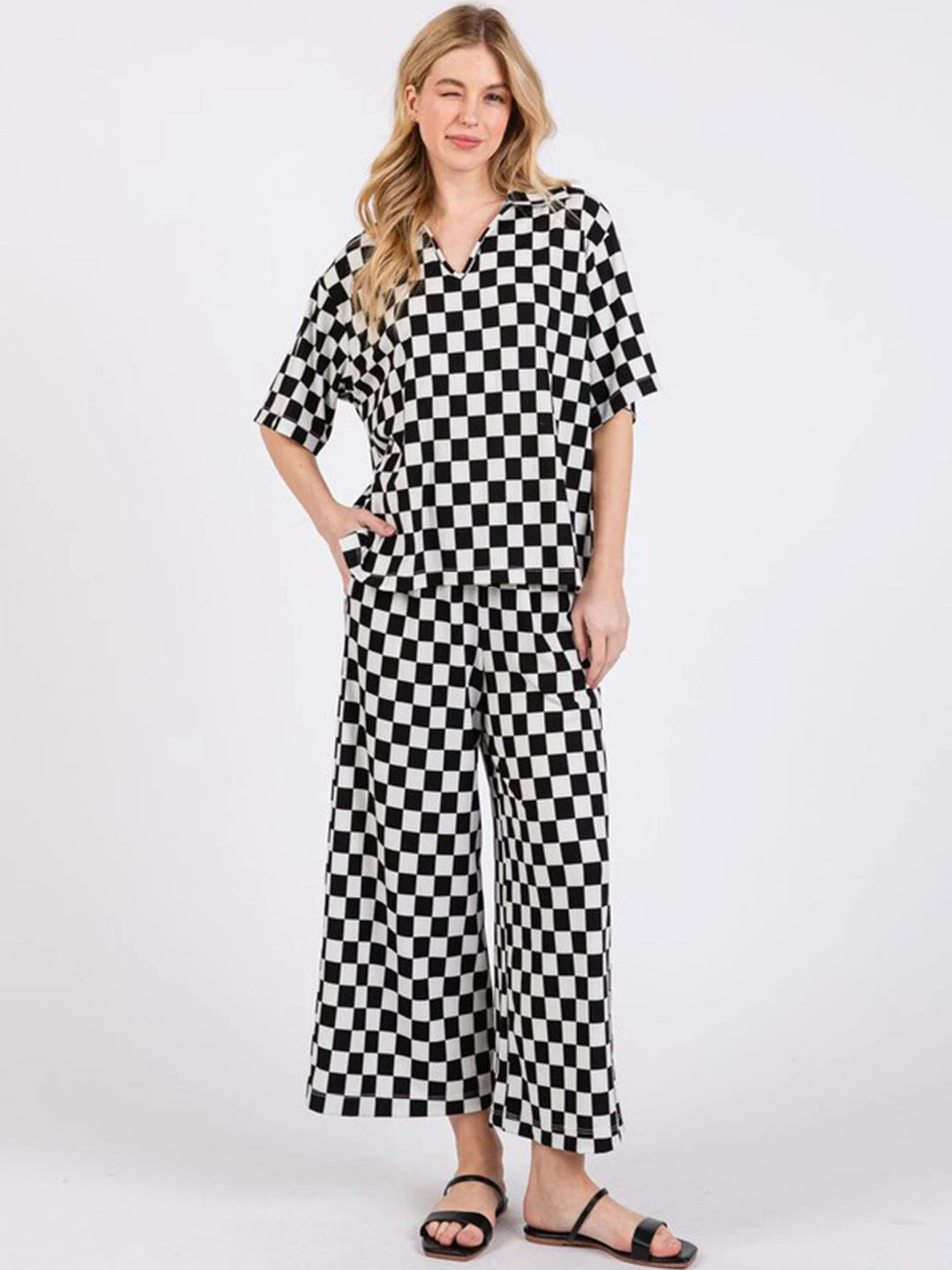 SHORT SLEEVE TOP CHECKER PRINT - KC